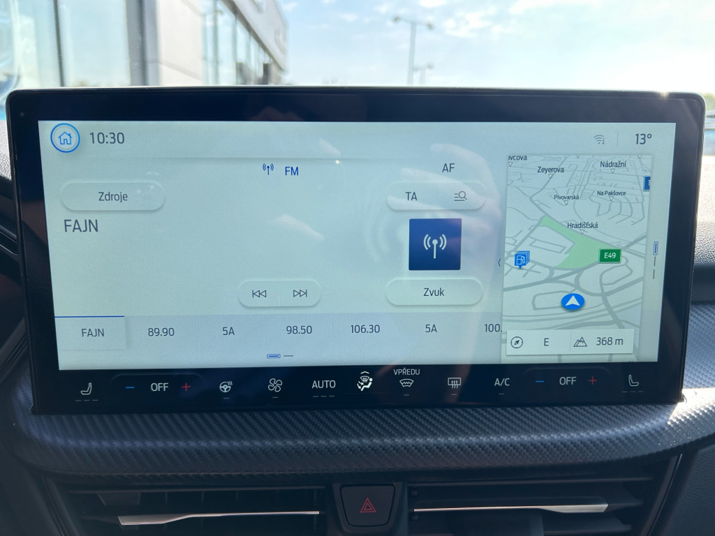 Vestavěný modem 5G, vzdálené ovládání vozidla pomocí mobilní aplikace FordPass, online aktualizace softwaru vozidla (OTA) včetně mapových podkladů, možnost rozšířené konektivity díky předplatným FordPass (např. dopravní informace Live Traffic, informace o nebezpečí v okolí (LHI) a další), eCall – tlačítko SOS pro automatické i vyžádané nouzové volání, rádio a systém SYNC 4 s 13,2" dotykovým displejem a konverzačním rozpoznáváním hlasu (v českém jazyce), online vzdálené aktualizace (OTA), navigační systém s online cloudovým připojením, bezdrátové připojení funkcí Android Auto nebo Apple CarPlay, Bluetooth® handsfree, 2x USB konektor, příjem DAB+