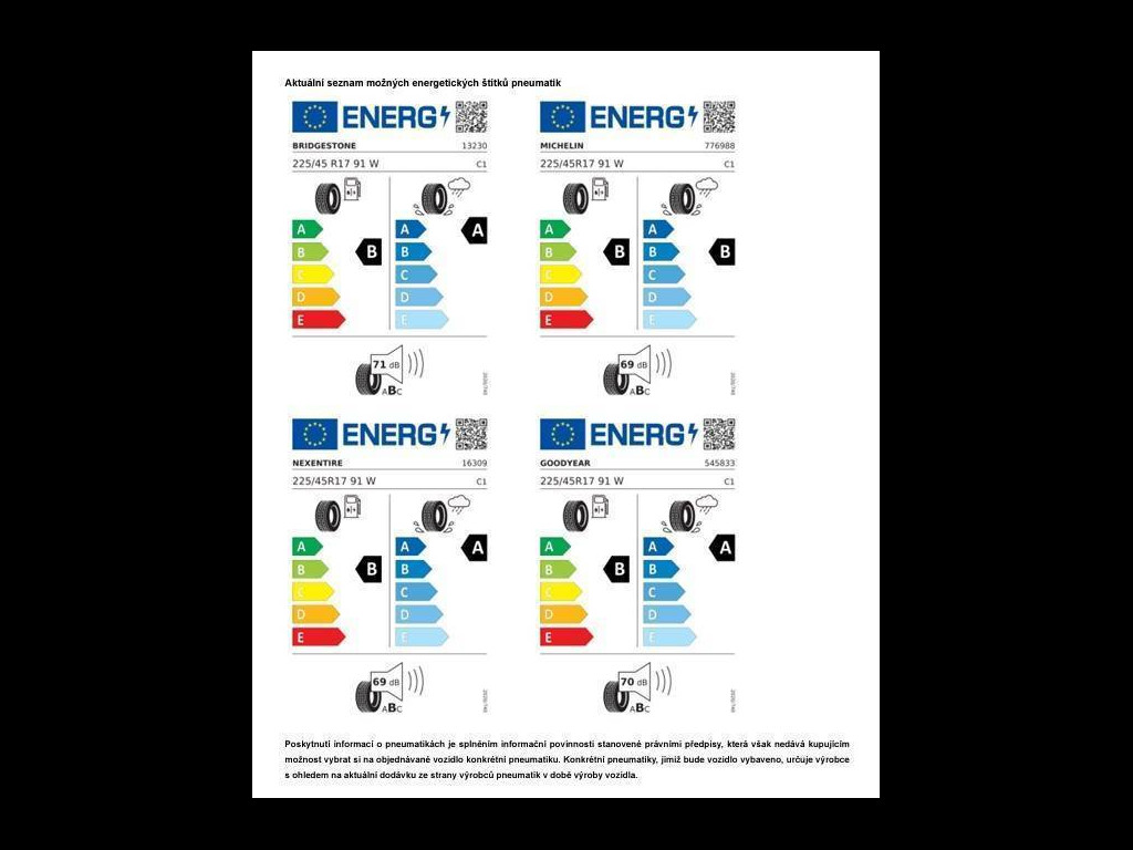 • Podélné střešní nosiče černé, Uvítací světlo, projekce z vnějších zpětných zrcátek, Vnější zpětná zrcátka a kliky dveří, v barvě vozu, Zatmavená zadní okna, boční zadní okna, okno pátých dveří, 65% absorpce světla, Ambientní osvětlení I, osvětlení lišty přístrojové desky, ozdobných lišt výplní dveří, odkládací přihrádky ve všech 4 dveřích, výběr ze škály 10 barev, Bederní opěrky vpředu, Bezpečnostní opěrky hlavy vpředu, Dekor interiéru "Nature Cross Brushed", Chromové provedení ovládacích prvků, na elektrickém zrcátku, na spínačích regulátoru oken, chromované lišty na větracích otvorech, LED lampičky na čtení, 2 vpředu, 2 vzadu, Loketní opěrka vpředu, podélně a výškově nastavitelná, Make-up zrcátka ve slunečních clonách, s osvětlením, Potahy sedadel v látce, design "Life", Sedadla vpředu výškově nastavitelná, Tříbodové bezpečnostní pásy, vpředu, výškové nastavení, s předepínači, Tříbodové bezpečnostní pásy vzadu, Tři zásuvné opěrky hlavy vzadu, 12V zásuvka v zavazadlovém prostoru, ACC - automatická regulace odstupu, automatická regulace odstupu od vpředu jedoucího vozu s omezovačem rychlosti, funkce "stop & go" (pouze pro automatickou převodovku), do 210 km/h, Asistent při odbočování vlevo, detekce protijedoucích vozidel při odbočování vlevo, automatické brzdění vozu při hrozící srážce, Automatická klimatizace Climatronic, automatická regulace, nastavení teploty oddělené pro řidiče a spolujezdce, senzor kvality vnějšího vzduchu s automatickým přepnutím na vnitřní cirkulaci, 3zónová, Automatický spínač světlometů, oddělené LED denní svícení, Funkce Coming Home a Leaving Home, Bezpečnostní systém rozpoznávání chodců, Centrální zamykání Keyless Start, bezklíčové startování, bez SAFELOCK, Čelní airbag řidiče a spolujezdce - 4UF, u spolujezdce s možností deaktivace, Dvoutónový klakson, Elektromechanická parkovací brzda, s funkcí Auto Hold, Elektronický imobilizér, Front Assist, s funkcí automatického nouzového brždění, s rozpoznáním chodců a cyklistů, Funkce start/stop, rekuperace kinetické energie při brždění, Hlavové airbagy vpředu i vzadu, boční airbagy vpředu, centrální airbag vpředu mezi sedadly řidiče a spolujezdce, ISOFIX, příprava pro upevnění dětské sedačky na sedadle spolujezdce a na vnějších zadních sedačkách, Lane Assist, systém pro udržování vozu v jízdním pruhu, LED podsvícení vnějších klik dveří, LED zadní světla, Longlife režim, prodloužený servisní interval na 24 měsíců nebo 30 000 km, podle toho, která situace nastane dřív, Paket Comfort vč. SAFELOCK, Bezklíčové odemykání Keyless Access, včetně bezklíčového zamykání a startování, Keyless Access vč. SAFELOCK, Alarm proti krádeži, Back-up-Horn, ostraha interiéru, Parkovací asistent Park Assist, umožňující zaparkování částečně bez zásahu řidiče, Parkpilot se signalizací vzdálenosti od překážek směrem dopředu i dozadu, Easy Open & Close, elektrické otevírání a zavírání víka, Paket Světla a výhled vč. Light Assist, dešťový senzor, vnitřní zpětné zrcátko s automatickou clonou, Light Assist, automatické přepínání mezi dálkovými a potkávacími světlomety dle provozu v protisměru, Parkovací senzory Parkpilot, senzory vpředu i vzadu, zobrazení situace na displeji, Pohon předních kol, Posilovač řízení, s proměnlivým účinkem v závislosti na rychlosti, Povinná výbava, Výstražný trojúhelník, Lékárnička (dle německé normy), Reflexní vesta, Prediktivní omezovač rychlosti, Přední LED světlomety, včetně LED denního svícení, Příprava na We Connect a We Connect Plus, pro využívání služeb je nutná registrace a aktivace, Systém We Connect je nehmotným produktem (aplikací resp. softwarem) společnosti Volkswagen AG, 38436 Wolfsburg, Spolková republika Německo, která je jejím výhradním prodejcem/poskytovatelem. Autorizovaní prodejci značky Volkswagen prodávají výhradně hardware nezbytný pro jeho fungování a ve vztahu k prodeji softwaru společnost Volkswagen AG žádným právním způsobem nezastupují., Pokud nejsou služby ve voze aktivovány do 90 dní od předání vozu zákazníkovi, začne běžet bezplatná lhůta. Zákazník může služby aktivovat i později, ale bezplatná lhůta je v tom případě kratší., součástí přípravy není App-Connect, Příprava pro aktivaci navigace Discover, možnost aktivace navigačního systému Discover za příplatek v rámci in-car shopu, Rozpoznávání dopravních značek, Sada nářadí, Systém sledování únavy a pozornosti, varuje řidiče před únavou a nově i před rozptylováním (např. při používání telefonu), Tísňové volání, tlačítko tísňového volání ve voze, umožňuje telefonickou hlasovou péči do chvíle, než dorazí potřebná pomoc, hlasová péče je poskytována v 10ti evropských jazycích (němčina, angličtina, francouzština, italština, holandština, polština, portugalština, švédština, španělština a čeština), Varování nezapnutých bezpečnostních pásů, akustické i grafické, pro přední i zadní pásy, Vnější zpětná zrcátka el. sklopná, elektricky nastavitelná, vyhřívaná, s pamětí, automatické naklonění vnějšího zpětného zrcátka u spolujezdce při zařazení zpátečky, Zadní mlhové světlo, na jedné straně, obě světla signalizace couvání, Zimní paket, vyhřívání předních sedadel, vyhřívaný multifunkční volant v kůži (s pádly pro DSG převodovku), hlavice řadící páky v kůži, ukazatel stavu nádržky ostřikovačů, Zpětná kamera, App-Connect Wireless, bezdrátové propojení smartphone s infotaintmentem vozu (rádio, navigace), Digital Cockpit Pro, nová generace digitální